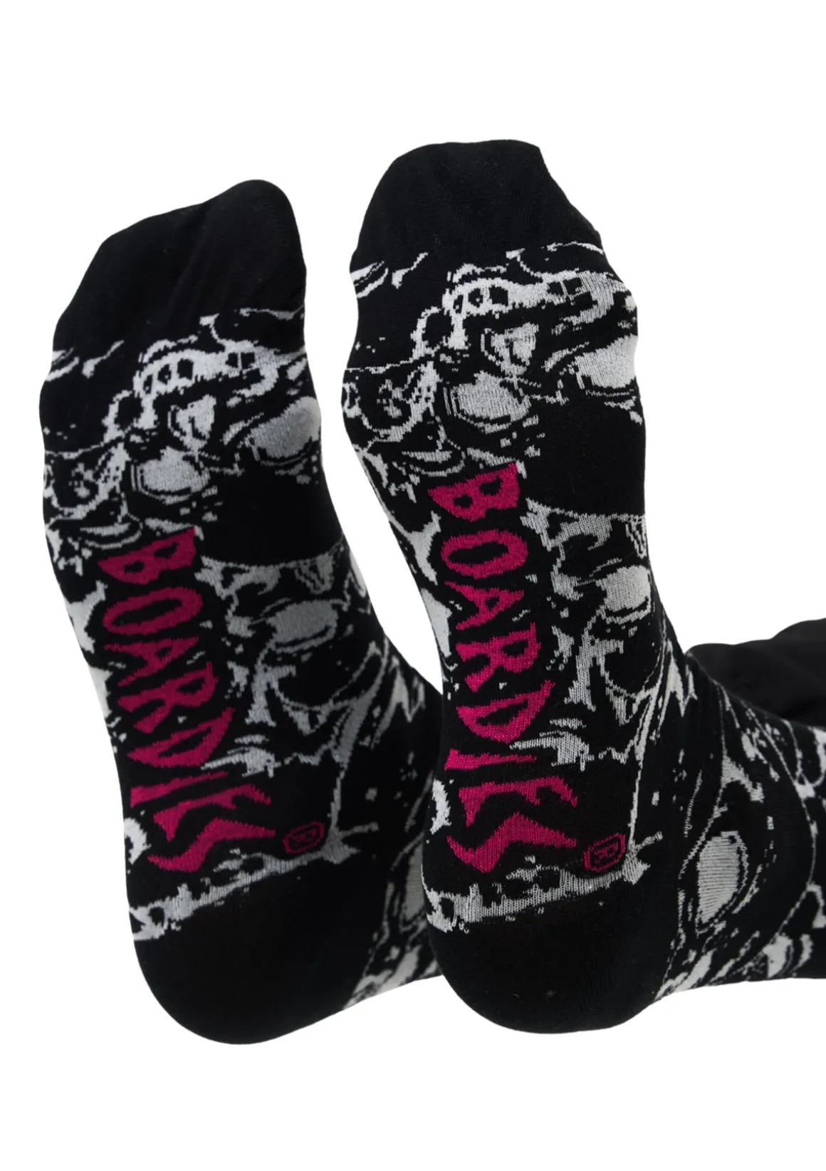 We Made Some Boardies® Socks For Ourselves And Liked Them So Much We Made Some More. These Are Seriously Comfy And Wash Nicely. Our Boardies® Hand Drawn Skulls Print Repeats On The Sock And Also The Script On The Foot.